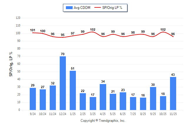 November 2025 Average Continuous Days on Market trend was Rising and Sold/Original List Price Ratio Remains Steady**