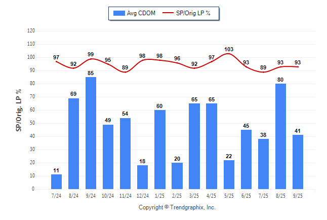 September 2025 Average Continuous Days on Market trend Remains Steady and Sold/Original List Price Ratio Remains Steady**