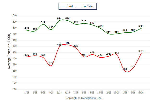 March 2026 Average For Sale Price was Appreciating and Average Sold Price was Neutral**