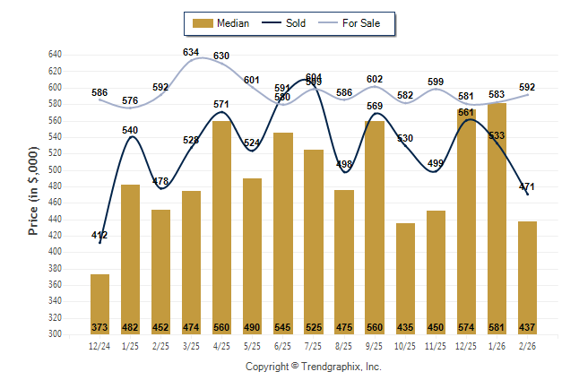February 2026 Median Price was Neutral, Avg. For Sale Price was Neutral, and Avg. Sold Price was Depreciating**
