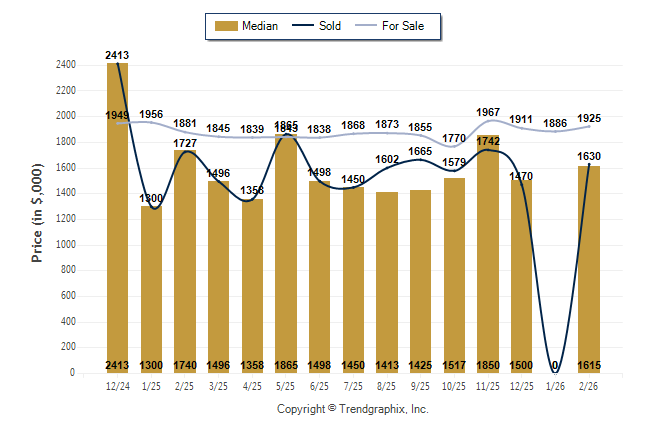 February 2026 Median Price was Neutral, Avg. For Sale Price was Appreciating, and Avg. Sold Price was Neutral**