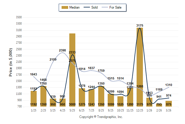 March 2026 Median Price was Neutral, Avg. For Sale Price was Neutral, and Avg. Sold Price was Neutral**
