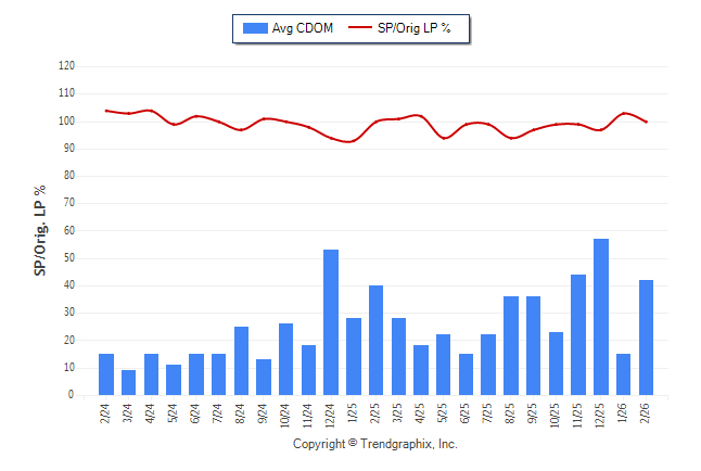 February 2026 Average Continuous Days on Market trend Remains Steady and Sold/Original List Price Ratio Remains Steady**