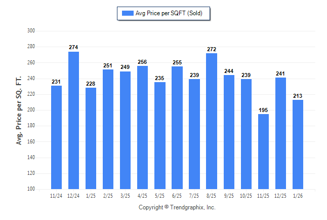 January 2026 Average Sold Price per Square Footage was Neutral**