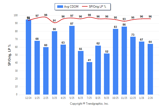 February 2026 Average Continuous Days on Market trend was Falling and Sold/Original List Price Ratio was Rising**