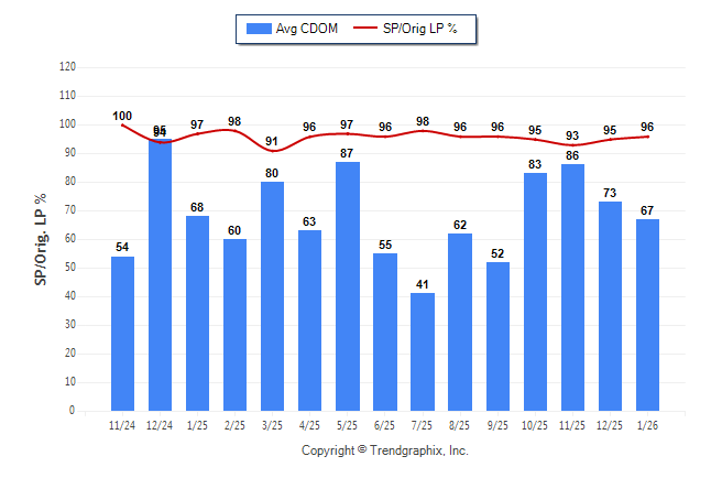 January 2026 Average Continuous Days on Market trend Remains Steady and Sold/Original List Price Ratio Remains Steady**