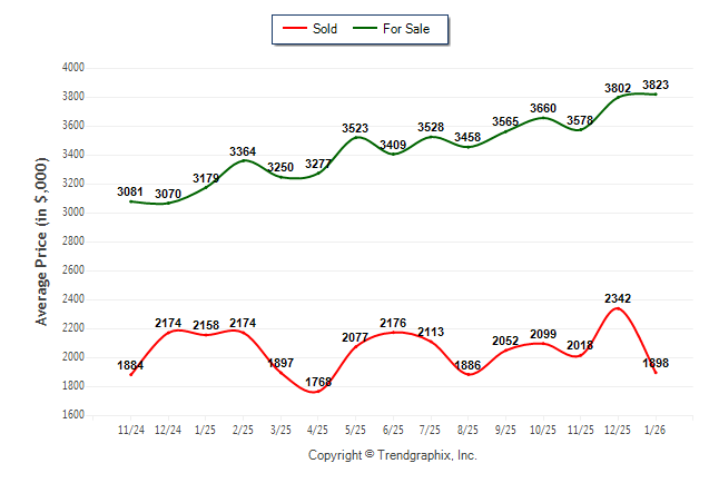 January 2026 Average For Sale Price was Appreciating and Average Sold Price was Neutral**