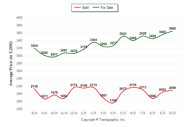 October 2025 Average For Sale Price was Appreciating and Average Sold Price was Neutral**