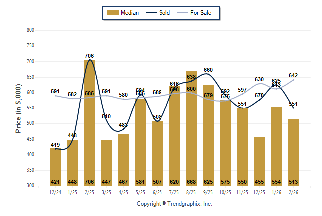 February 2026 Median Price was Neutral, Avg. For Sale Price was Appreciating, and Avg. Sold Price was Depreciating**