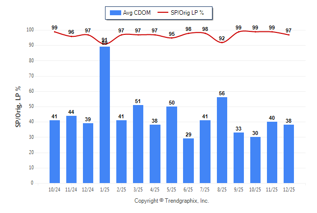 December 2025 Average Continuous Days on Market trend Remains Steady and Sold/Original List Price Ratio Remains Steady**