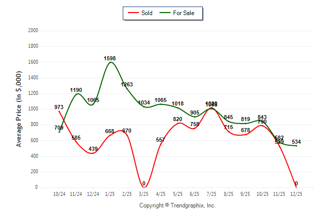 December 2025 Average For Sale Price was Depreciating and Average Sold Price was Depreciating**