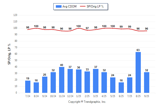 September 2025 Average Continuous Days on Market trend Remains Steady and Sold/Original List Price Ratio was Falling**