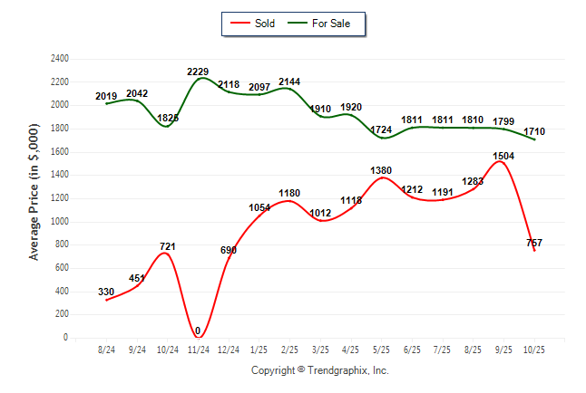 October 2025 Average For Sale Price was Depreciating and Average Sold Price was Neutral**