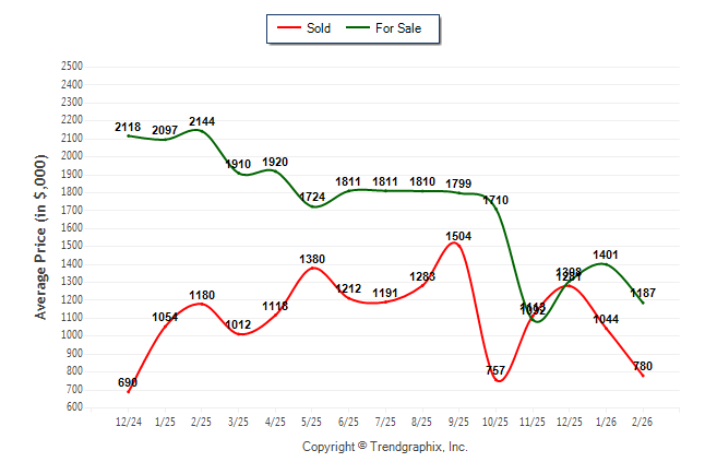 February 2026 Average For Sale Price was Depreciating and Average Sold Price was Depreciating**