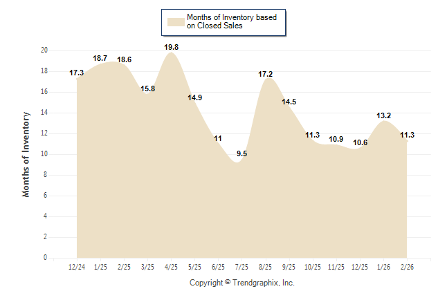Curnt vs. Same Month 1 Yr Ago: Months of Inventory (Closed Sales)
