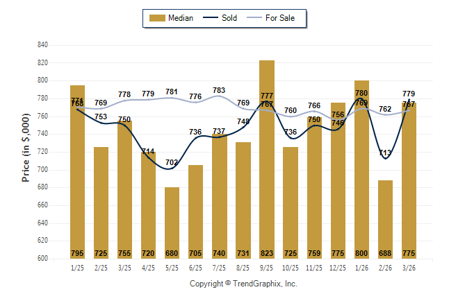 March 2026 Median Price was Neutral, Avg. For Sale Price was Neutral, and Avg. Sold Price was Neutral**