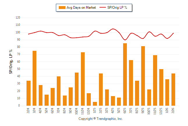 February 2026 Average Days on Market trend Remains Steady and Sold/Original List Price Ratio Remains Steady**