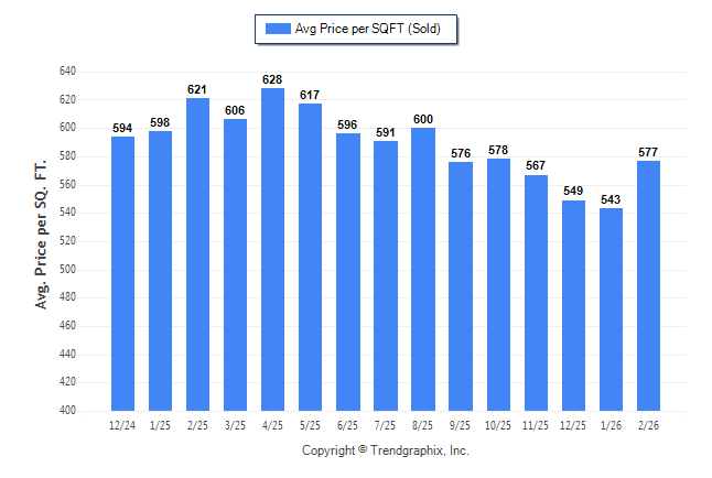 February 2026 Average Sold Price per Square Footage was Neutral**