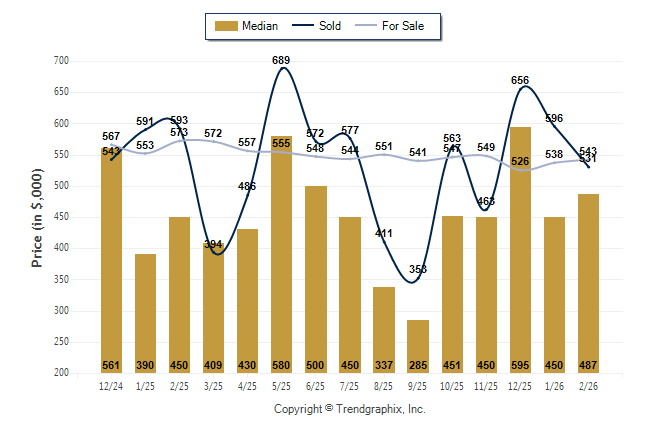 February 2026 Median Price was Neutral, Avg. For Sale Price was Neutral, and Avg. Sold Price was Neutral**