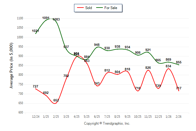 February 2026 Average For Sale Price was Depreciating and Average Sold Price was Depreciating**