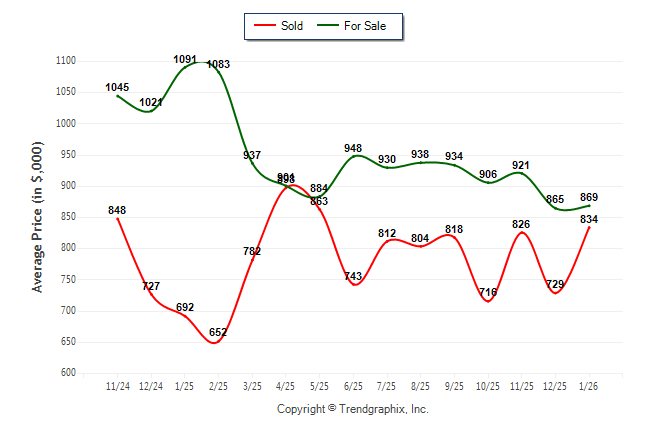 January 2026 Average For Sale Price was Neutral and Average Sold Price was Appreciating**
