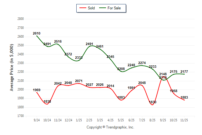 November 2025 Average For Sale Price was Neutral and Average Sold Price was Neutral**