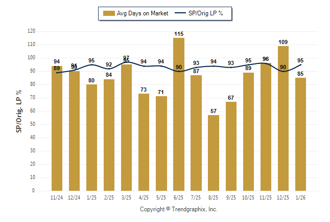 January 2026 Average Days on Market trend Remains Steady and Sold/Original List Price Ratio Remains Steady**