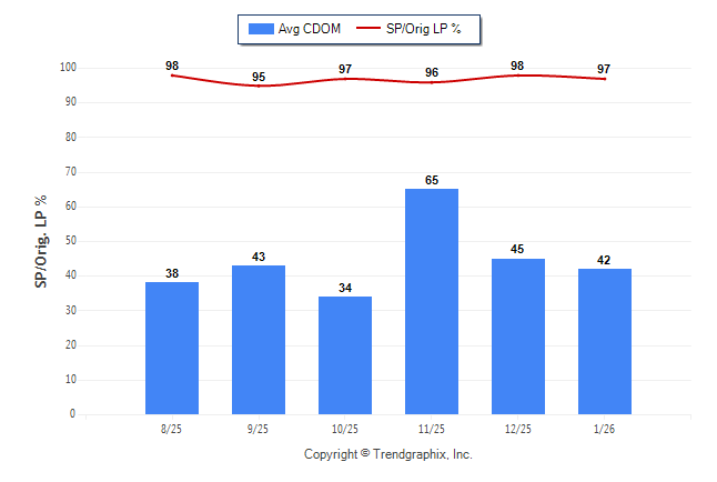 January 2026 Average Continuous Days on Market trend Remains Steady and Sold/Original List Price Ratio Remains Steady**