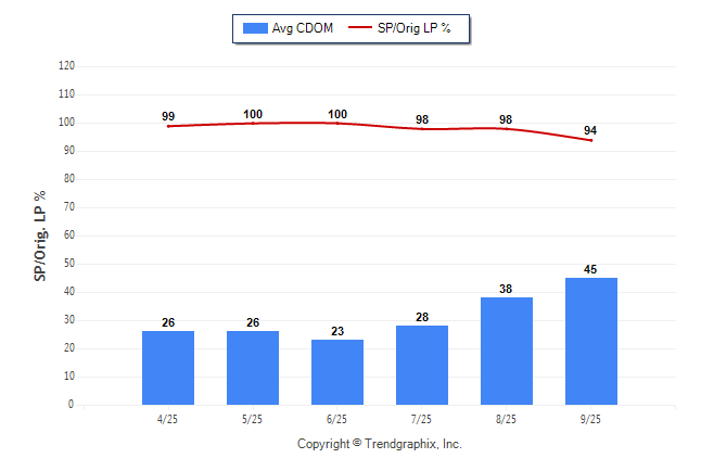 September 2025 Average Continuous Days on Market trend was Rising and Sold/Original List Price Ratio was Falling**