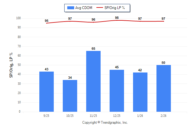 February 2026 Average Continuous Days on Market trend was Rising and Sold/Original List Price Ratio Remains Steady**