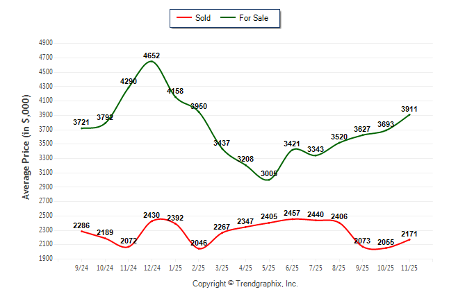 November 2025 Average For Sale Price was Appreciating and Average Sold Price was Neutral**