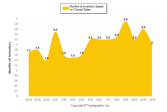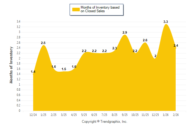 Curnt vs. Same Month 1 Yr Ago: Months of Inventory (Closed Sales)