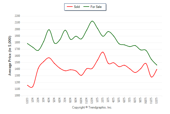 December 2025 Average For Sale Price was Depreciating and Average Sold Price was Neutral**