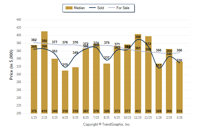 March 2026 Median Price was Neutral, Avg. For Sale Price was Neutral, and Avg. Sold Price was Neutral**