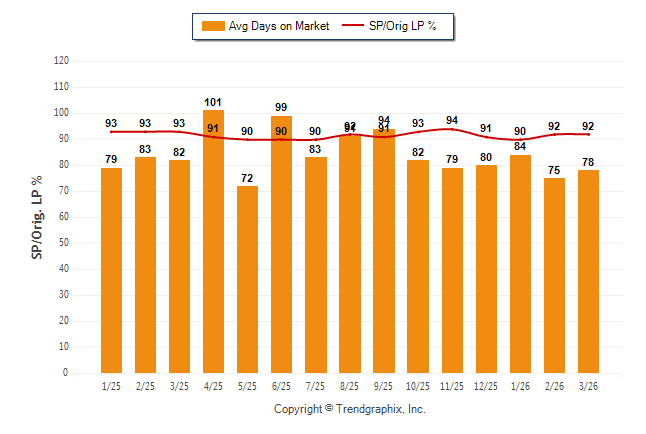 March 2026 Average Days on Market trend Remains Steady and Sold/Original List Price Ratio Remains Steady**