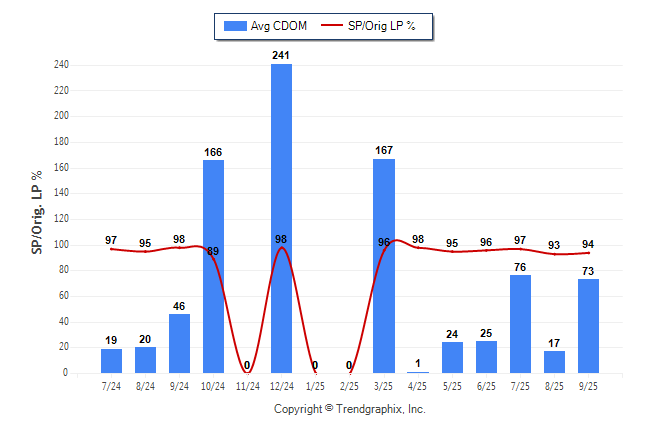 September 2025 Average Continuous Days on Market trend Remains Steady and Sold/Original List Price Ratio Remains Steady**