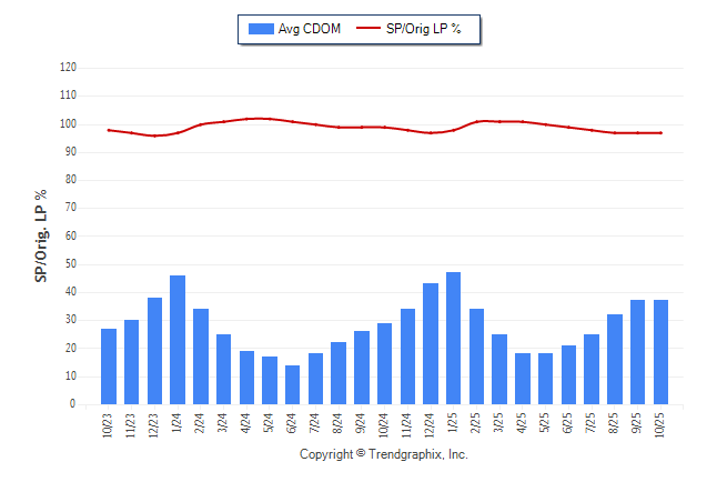 October 2025 Average Continuous Days on Market trend was Rising and Sold/Original List Price Ratio was Falling**