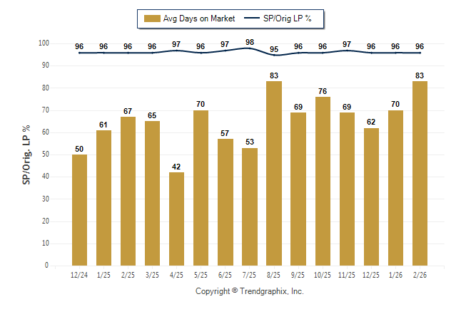 February 2026 Average Days on Market trend Remains Steady and Sold/Original List Price Ratio Remains Steady**