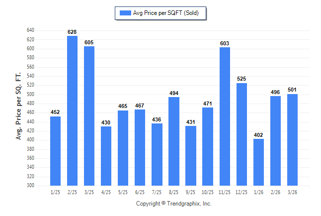 March 2026 Average Sold Price per Square Footage was Neutral**