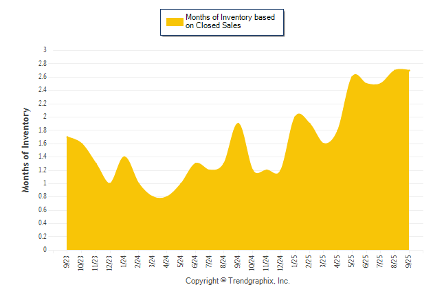 Curnt vs. Same Month 1 Yr Ago: Months of Inventory (Closed Sales)