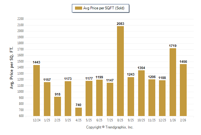 February 2026 Average Sold Price per Square Footage was Neutral**