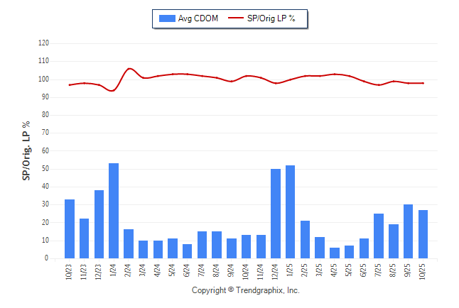 October 2025 Average Continuous Days on Market trend Remains Steady and Sold/Original List Price Ratio was Falling**