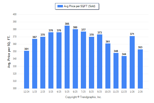 February 2026 Average Sold Price per Square Footage was Neutral**