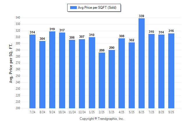 September 2025 Average Sold Price per Square Footage was Neutral**