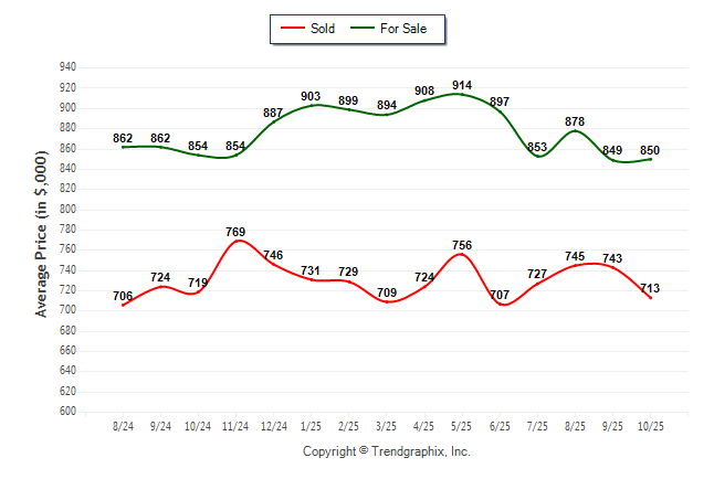October 2025 Average For Sale Price was Neutral and Average Sold Price was Neutral**