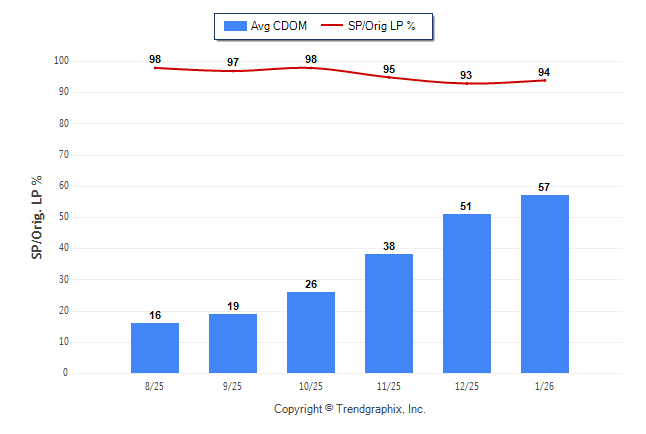 January 2026 Average Continuous Days on Market trend was Rising and Sold/Original List Price Ratio Remains Steady**