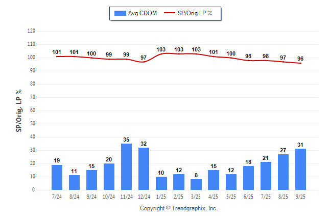 September 2025 Average Continuous Days on Market trend was Rising and Sold/Original List Price Ratio was Falling**