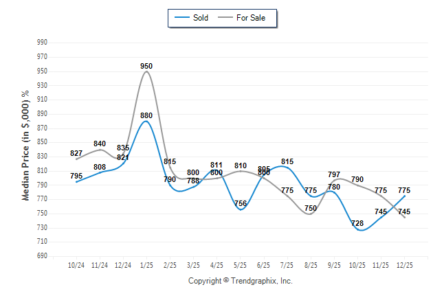 December 2025 Median Active was Depreciating and Median Sold Price was Neutral**