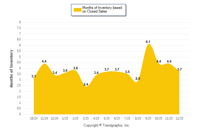 Curnt vs. Same Month 1 Yr Ago: Months of Inventory (Closed Sales)