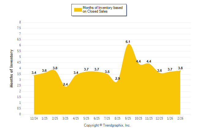 Curnt vs. Same Month 1 Yr Ago: Months of Inventory (Closed Sales) 0%